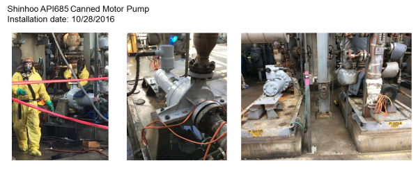 ▲美國某廢油再精煉廠使用新滬API685屏蔽泵成功替換原API610離心泵